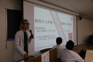 ・「企業・学校・地域がどう連携して子どもたちの学びを支えるか」がテーマであることを説明。