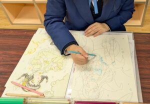 現在は,「構図を意識したイラスト制作」に取り組み,基本的な構図についてを説明を行い、その中から自分が好きな構図を選択してイラストを作成しています。